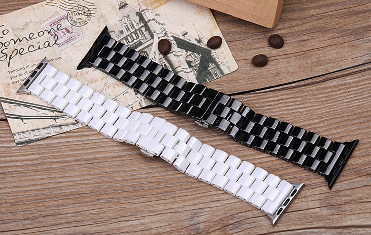 Sanzhu ceramic watch strap in black and white, showcasing elegant ceramic band beads and durable design.